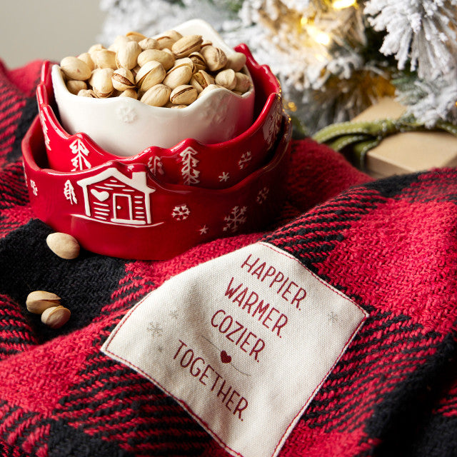 Capturing the spirit of a cozy cabin getaway, the Holly Lodge collection, including the Cozy Together Plaid Family Mega Blanket, makes time spent together extra homey, like movie nights and snuggles by the fire. Warm plaid patterns and wood accents create a rustically welcoming environment. Discover everything needed to deck the house with jolly.