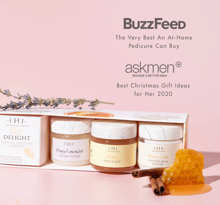 Includes our best-selling Honey Heel Glaze® (Oprah's O-List foot serum made with date honey), lightweight Honey Lavender Sea Salt Scrub, and Honey-Chai Steeped Milk Lotion® (a gorgeous, spiced-milk infusion of organic coconut milk and sultry cardamom).