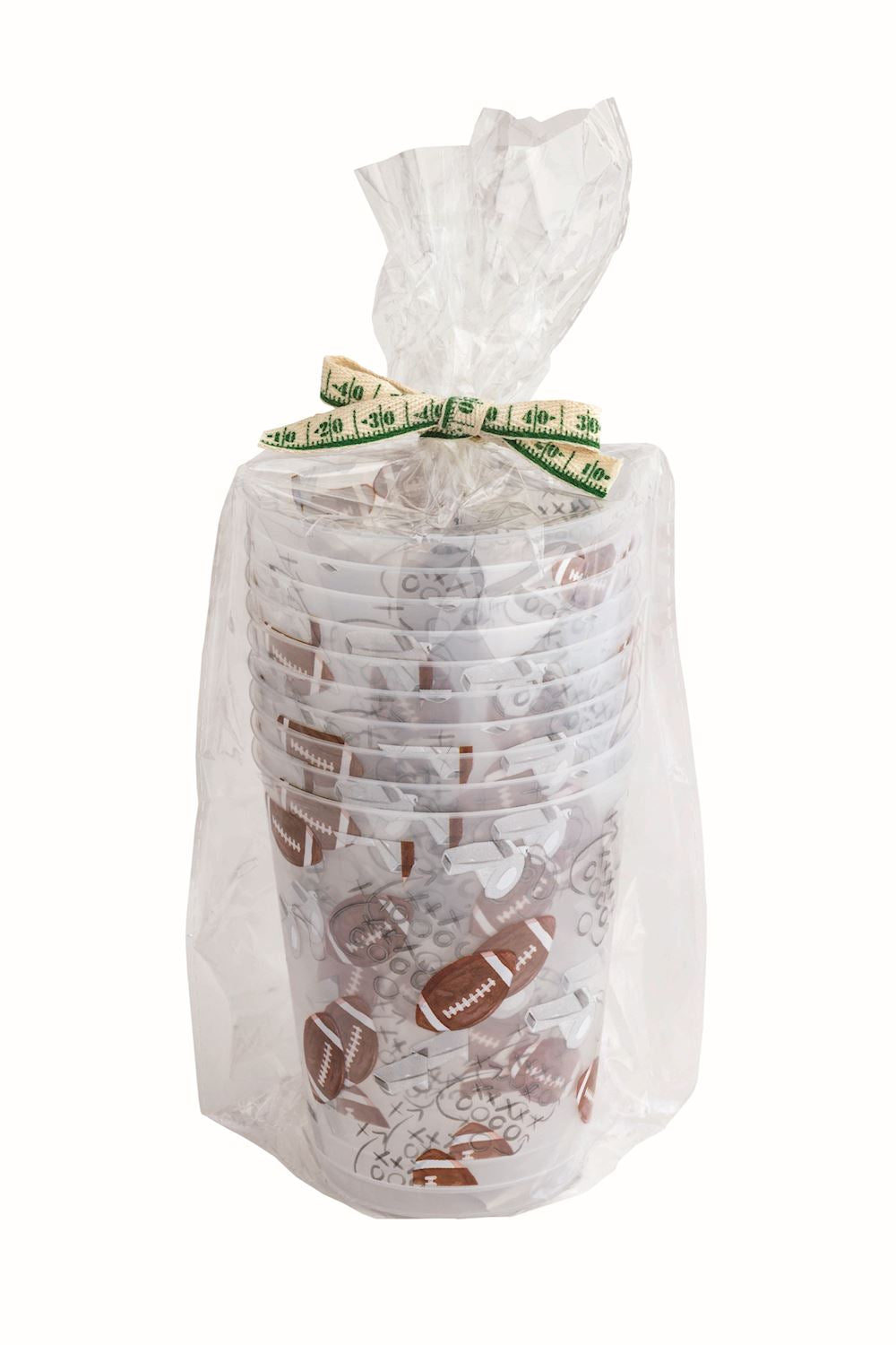 Elevate your gatherings with this refined set of 10 frosted party cups, thoughtfully stacked and elegantly wrapped in cello for a polished presentation. Perfect for tailgate parties or sophisticated outdoor events, these cups combine practicality with style, ensuring your guests enjoy their drinks in tasteful glassware that enhances the overall ambiance.