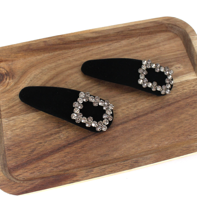 Jeweled with crystals, this velvet hairclip is a chic addition to any woman's accessory collection. Whether for a casual day out or a sophisticated evening look, this hairclip adds a touch of elegance to your ensemble.