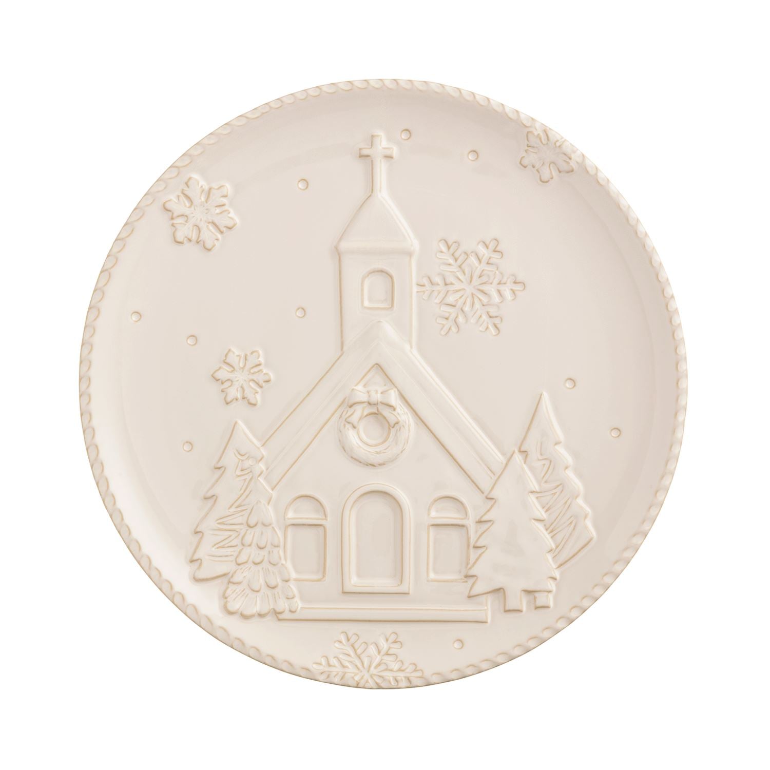 Bring festive charm to your table with this delightful white church plate. Featuring a milk glaze finish and a textured relief design of a Christmas church surrounded by snowflakes, it’s perfect for spreading holiday cheer. Its intricate details add a whimsical touch to your seasonal gatherings, making every meal feel like a celebration in a cozy winter wonderland. Ideal for serving cookies, treats, or your favorite holiday dishes, this plate combines classic elegance with playful holiday spirit.